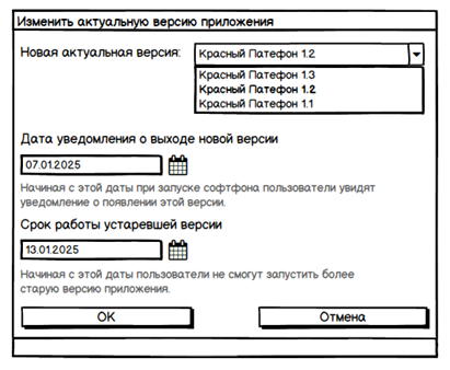 После указанной даты пользователи Устаревшей версии приложения начнут видеть уведомление о том, что доступна новая версия приложения; - Срок работы устаревшей версии: