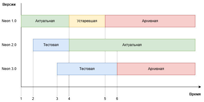 Версия Neon 1.0 переходит в статус Устаревшей, а Neon 2.0 в статус Актуальной.