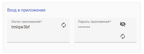 8. В разделе Вход в приложение Укажите Логин приложения и Пароль приложения.